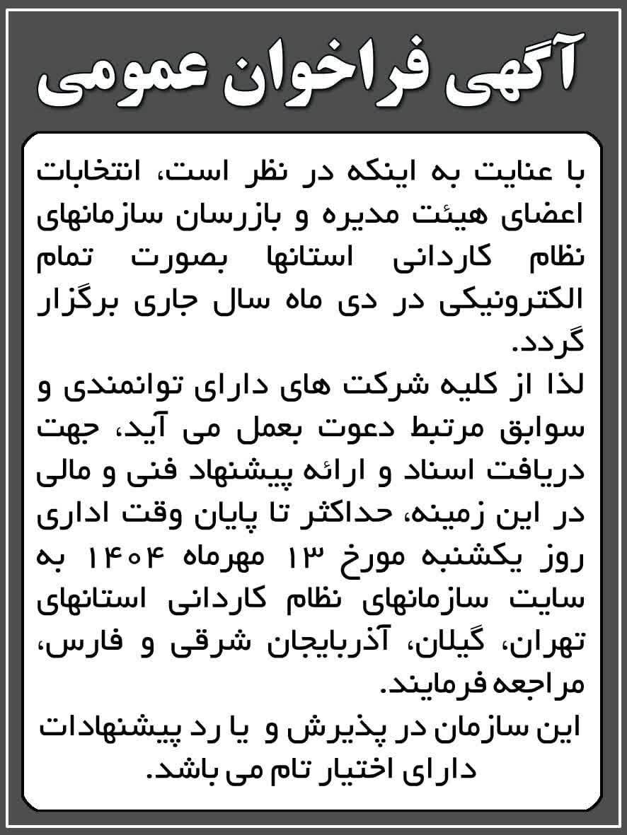 آگهی فراخوان عمومی برگزاری انتخابات الکترونیکی نظام کاردانی ساختمان استان